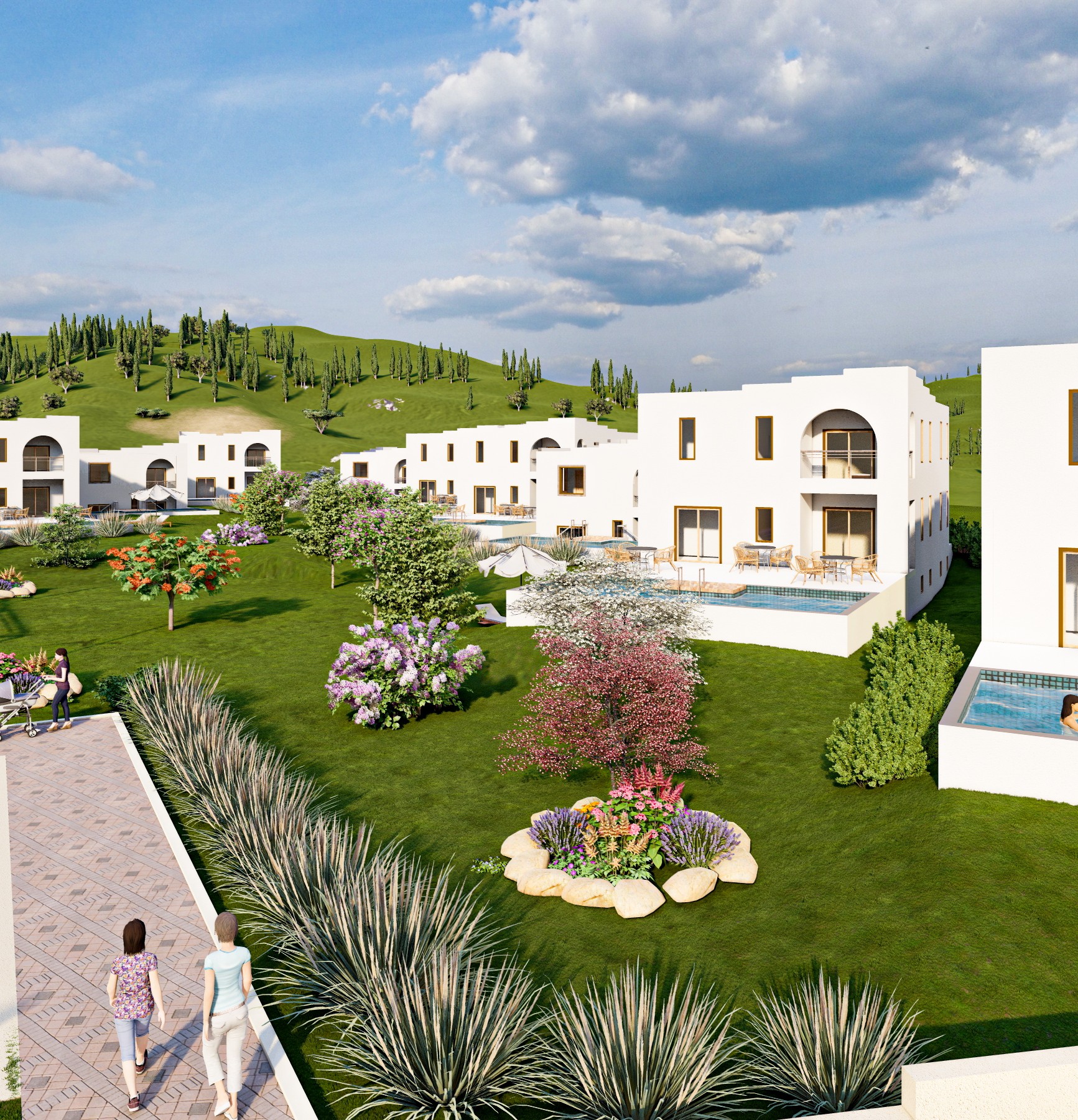 You can order the apartment with your own design as you wish. or buy a plot of land and build the house you want. Each apartment in this development is suitable for rental or personal use. All buildings have their own pool and landscaped areas.