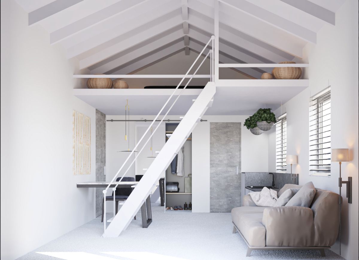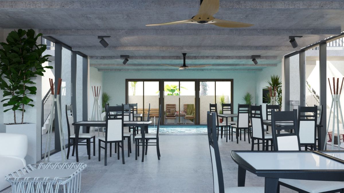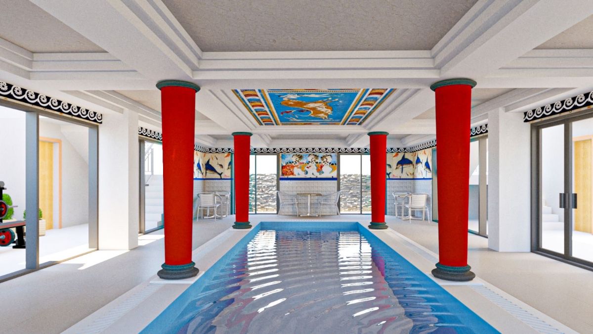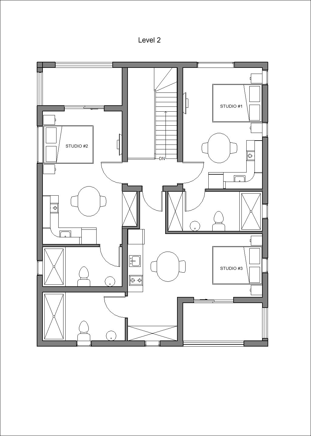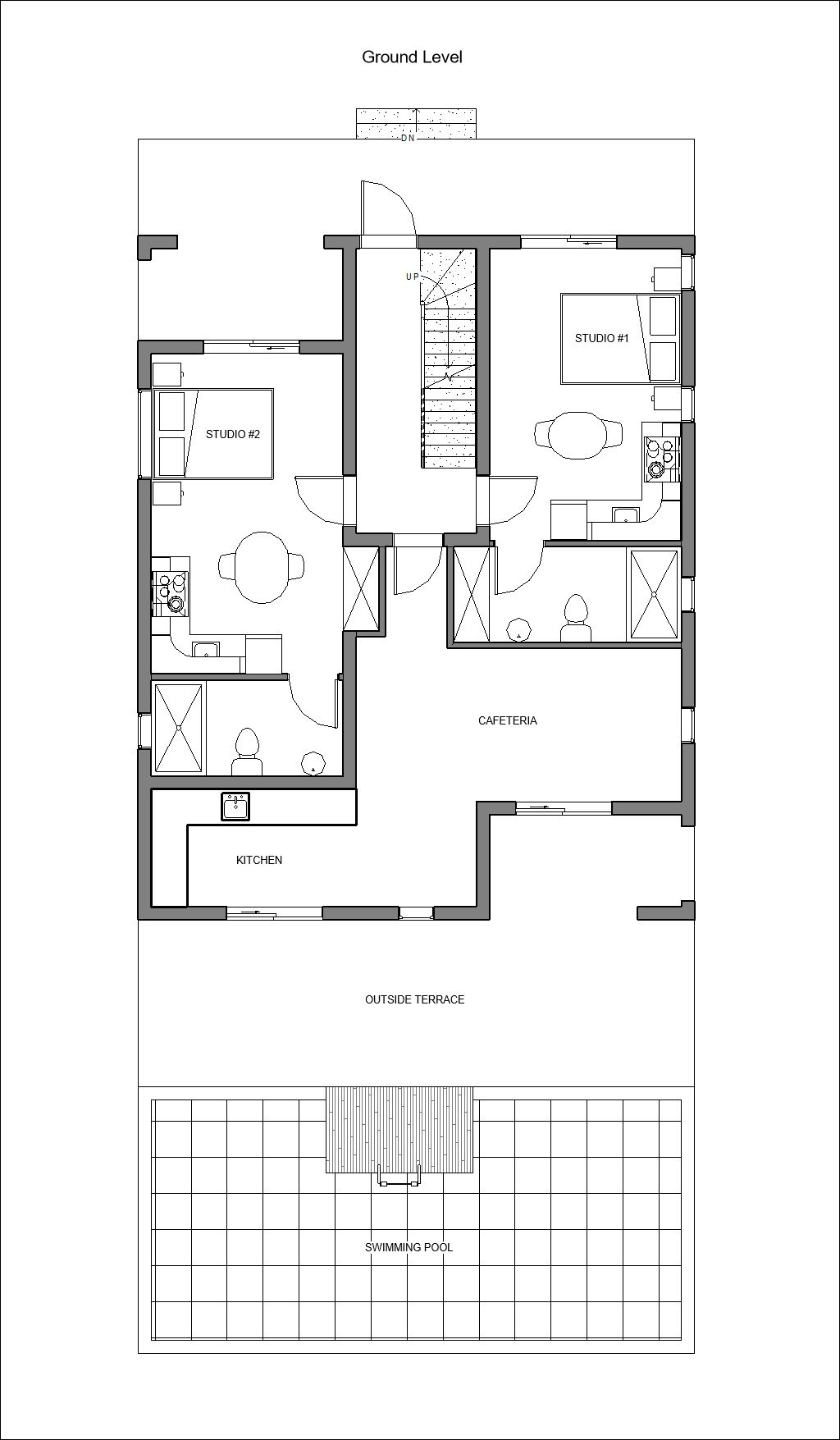 As Greek Americans like to go to Greece a few weeks a year, we have designed a building with five studios. This building has a common area in the basement to include a kitchen utility area, a cafe /sitting area, bathrooms, and access to an outdoor pool.